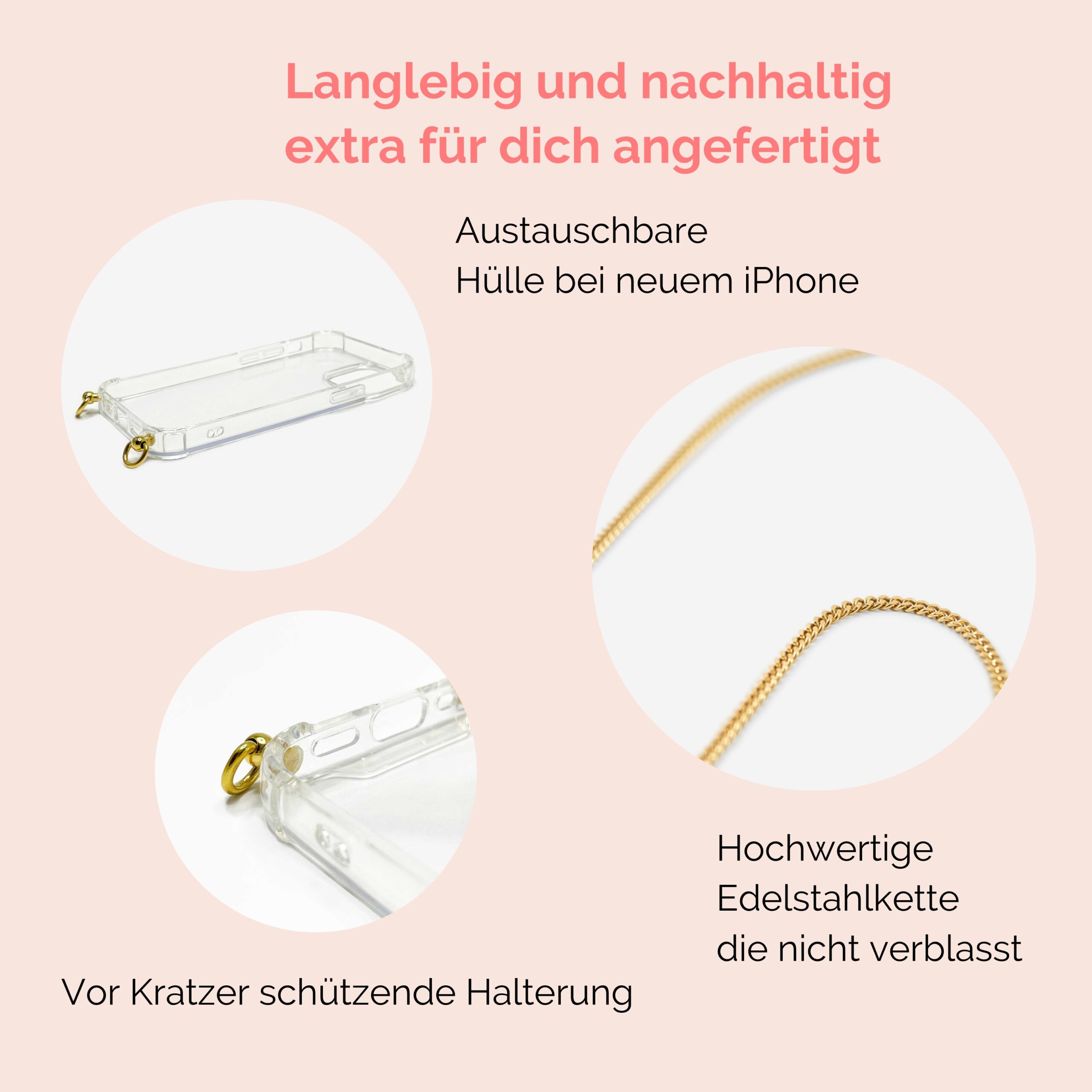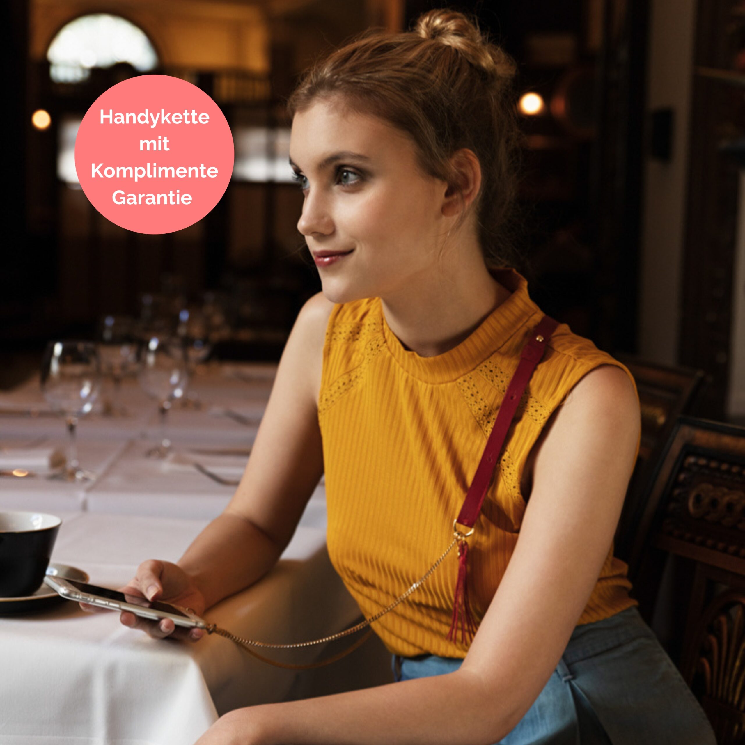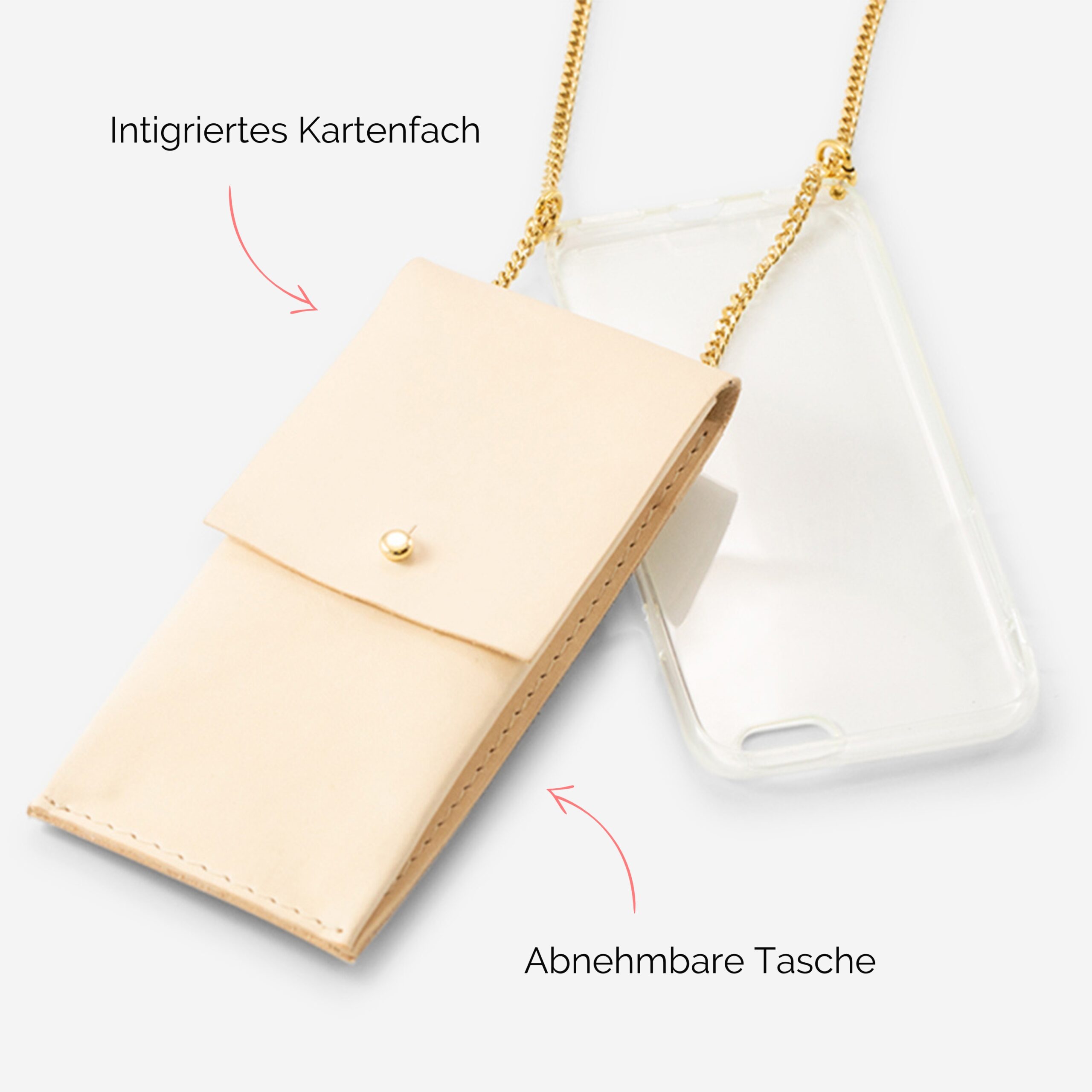 Wir erfanden die Lederschlaufen-Aufhängung an der Handyhülle sowie die schonende Polsterung in den Ecken bei einer Metallaufhängung. Unser Modell Handykette mit Gliederkette war als eine der ersten dieser Art in den Zeitschriften und die kleinen Taschen, die sich an die Handyketten anklipsen lassen, haben wir auch erfunden.